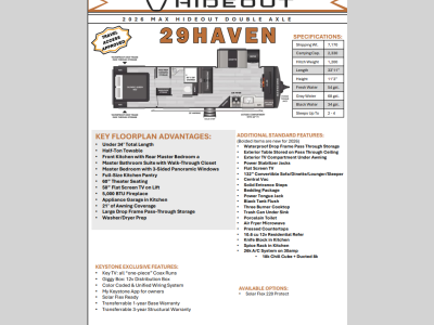 CampNorth RV is not responsible for any misprints, typos, or errors found in our website pages. Any price listed excludes sales tax, registration tags, and delivery fees. Manufacturer pictures, specifications, and features may be used in place of actual units on our lot. Please contact us @269-679-4485 for availability as our inventory changes rapidly. Payments are estimates based on 10% down and 7.99% APR for qualified buyers based on 120 month to 240 month terms based on amount financed. All calculated payments are an estimate only and do not constitute a commitment that financing or a specific interest rate or term is available. Only $280 Doc fee, no hidden fees.