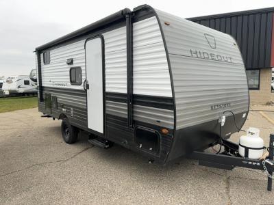 With any Hideout Mini travel trailer by Keystone, you will enjoy lightweight towing thanks to their single-axle! The AlphaPly TPO roof membrane is ultra durable, and the power awning will provide protection from the sun as you relax in your camp chairs outside. Each model includes blackout night shades, LED lighting, plus many more interior comforts. There is also a roof A/C and 20K BTU furnace to keep you comfortable, plus a tankless water heater for endless hot showers!