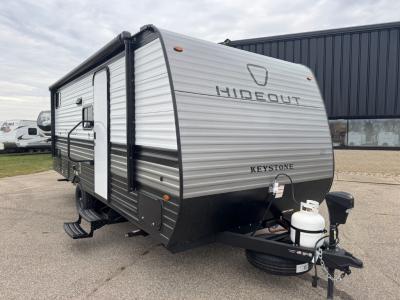 With any Hideout Mini travel trailer by Keystone, you will enjoy lightweight towing thanks to their single axle! The XL tinted safety glass windows are ultra durable, and the power awning will provide protection from the sun as you relax in your camp chairs outside. Each model includes blackout night shades, LED lighting, plus many more interior comforts. There is also a 20K BTU furnace to keep you comfortable, plus a tankless water heater for endless hot showers!